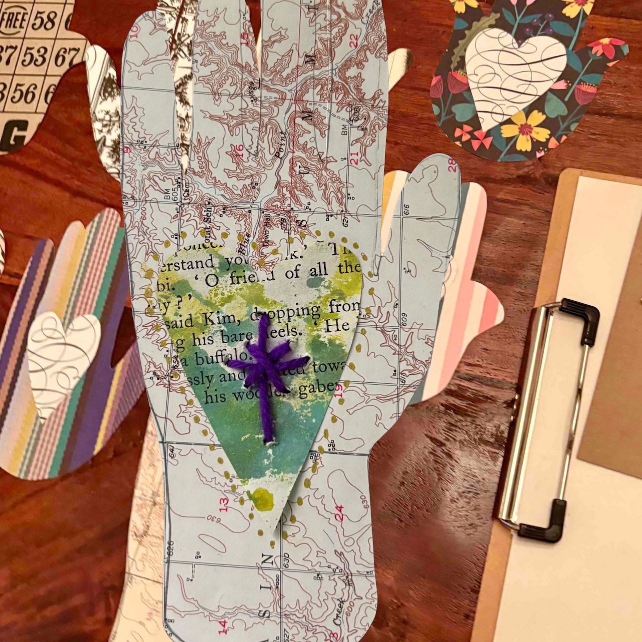 Finding Flow is an adventure from head to heart to hands. Through intention setting warmups we will dive into the Open Hand concept. To truly open our minds and hearts, we must release control and be receptive to our unlimited potential. Open Hands reminds us what is truly important, our relationship with ourselves and then ultimately others. We will use mono printing, collage, and mixed media to express our intention for the weekend. Sparks of joy shall fly…