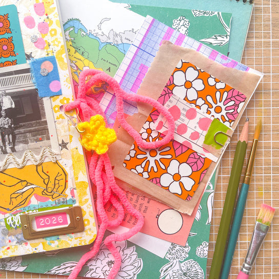Caroline is an expert-level eclectic. She believes following your artistic intuition is about mixing style, color and pattern, the bolder the better! She is an energetic, crafty lady—wife, mom, and lifelong artist-on-the-side—who approaches creativity with joyful freedom and a love for all things colorful. With a passion for documenting and drawn to vintage treasures and a maximalist design aesthetic, paper crafting and journaling have remained at the heart of her work. When she’s not creating, you can find her thrifting for inspiration, listening to rock music, watching scary movies, and enjoying life with the incredible people—and pets—who make her feel truly lucky.